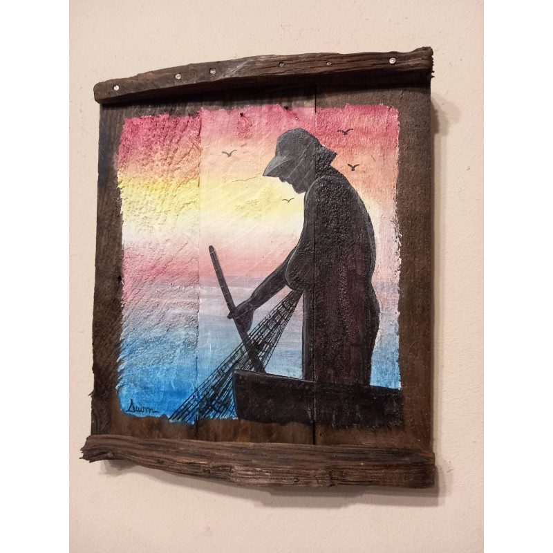Αυτό το χειροποίητο ξύλινο έργο τέχνης αποτυπώνει όμορφα το ήσυχο πνεύμα ενός ψαρά εν ώρα εργασίας. Με εξαιρετική προσοχή στη λεπτομέρεια, το σχήμα απεικονίζει μια στιγμή ηρεμίας και υπομονής, αντανακλώντας τη διαχρονική σύνδεση μεταξύ ανθρώπου και νερού. Τα φυσικά νερά του ξύλου ενισχύουν τη ζεστασιά και την αυθεντικότητα του έργου, ενώ το λείο φινίρισμα αναδεικνύει την κατασκευαστική δεξιοτεχνία. Είτε εκτίθεται ως κεντρικό κομμάτι είτε ως μέρος μιας συλλογής, αυτό το έργο τέχνης φέρνει μια αίσθηση ηρεμίας, παράδοσης και σεβασμού για τις απλές χαρές της φύσης.